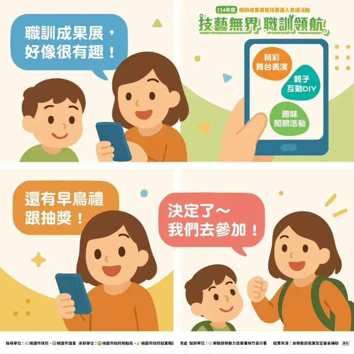 這裡有職訓成果展示、舞台表演、趣味闖關、親子DIY,還有驚喜抽獎 🎁
